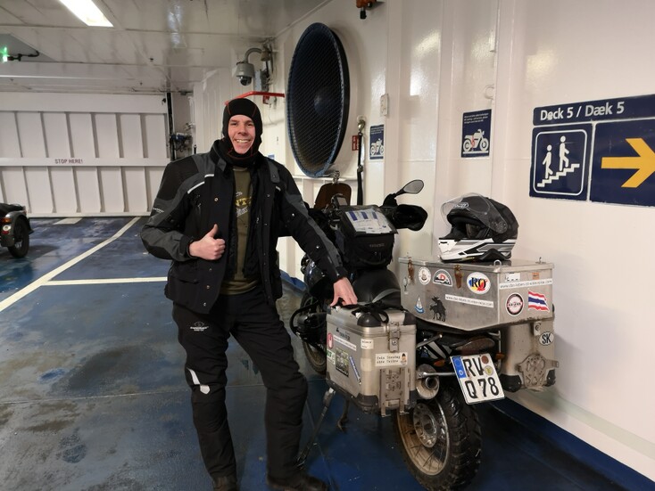 doch zum Hafen gefahren und habe mein Motorrad ordentlich verzurrt,