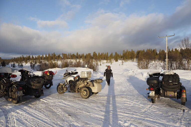 Das empfohlene Fahrzeug zur Anreise ist das Motorradgespann, da es das Winterfahrzeug schlechthin darstellt und es jede Menge Spaß macht, damit durch Schnee und Eis zu pflügen. Es ist kaum zu glauben, vor allem für jemand, der es noch nicht probiert hat, aber mit Spikes fährt es sich wie auf Schienen. Auch der Bremsweg ist sehr kurz.
